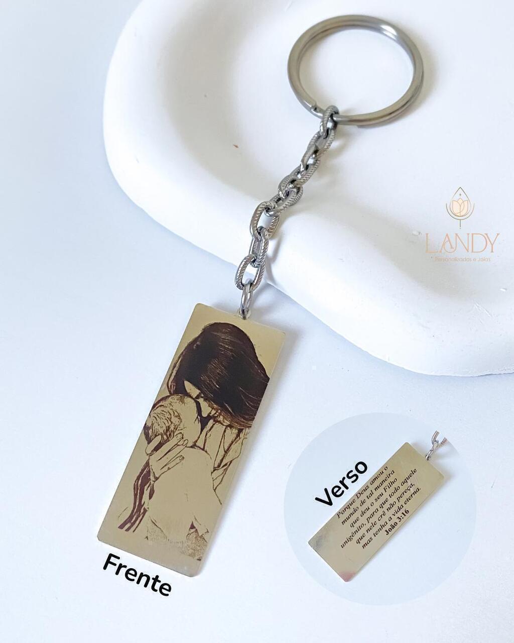Nosso chaveiro personalizado é perfeito para eternizar momentos únicos. Ele possui 2,5cm de tamanho e permite gravação em ambos os lados: foto, nome, iniciais, datas, frases ou até mesmo um versículo.